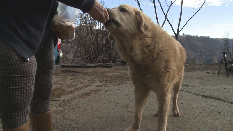 PARADISE, Calif. (KABC) -- A family returned home after being forced to evacuate from the Camp Fire's flames to find their dog watching over their burned property.