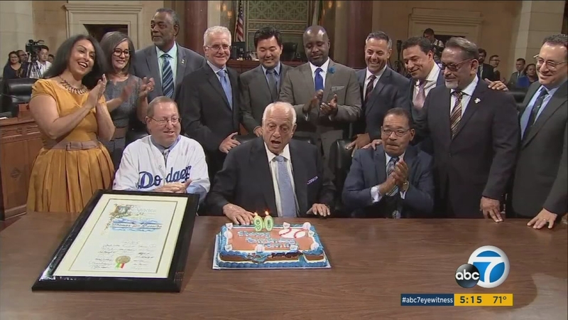 LOS ANGELES (KABC) -- The Los Angeles City Council on Friday honored Dodgers legend Tommy Lasorda with a celebration of his 90th birthday, which was on Sept. 22.