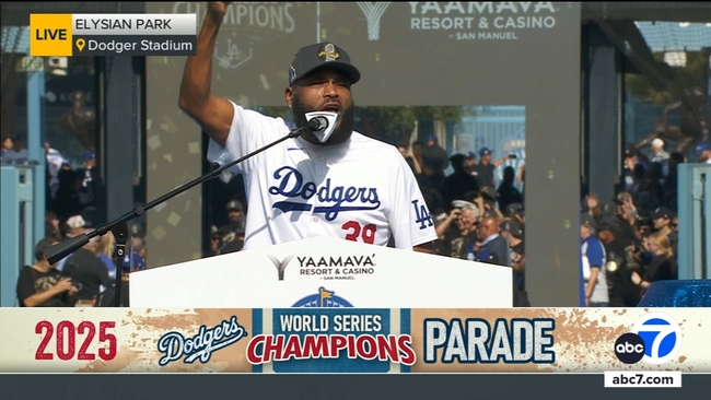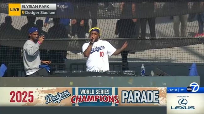 DJ Mustard, a Los Angeles-based music producer and beatmaker, surprised fans at the Dodger Stadium Championship Celebration on Monday.