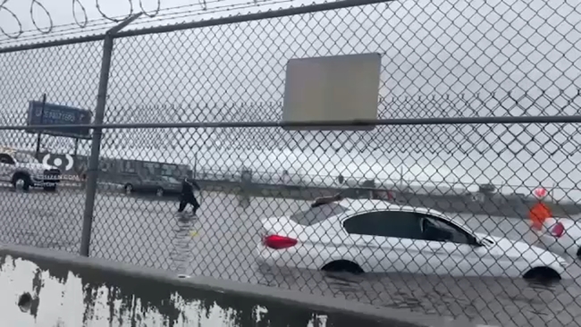 "They wouldn't tow me unless I got out of the car," he said. "So I walked through a bunch of water and, I'll tell you, all the service stuff is really amazing, but I guess there'll be a tow truck here pretty quickly."