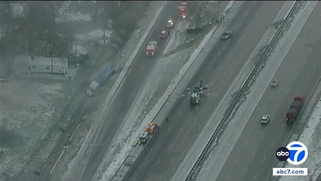 The crash was reported around 6 a.m. at Parker Road, according to the California Highway Patrol. Light snow falling in the area.