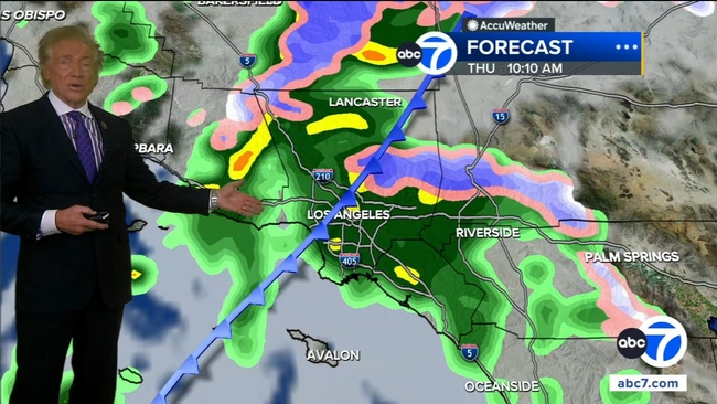 The third storm of the week is quickly moving into Southern California, bringing more rain and snow, but the region will soon get a break from the wet weather.