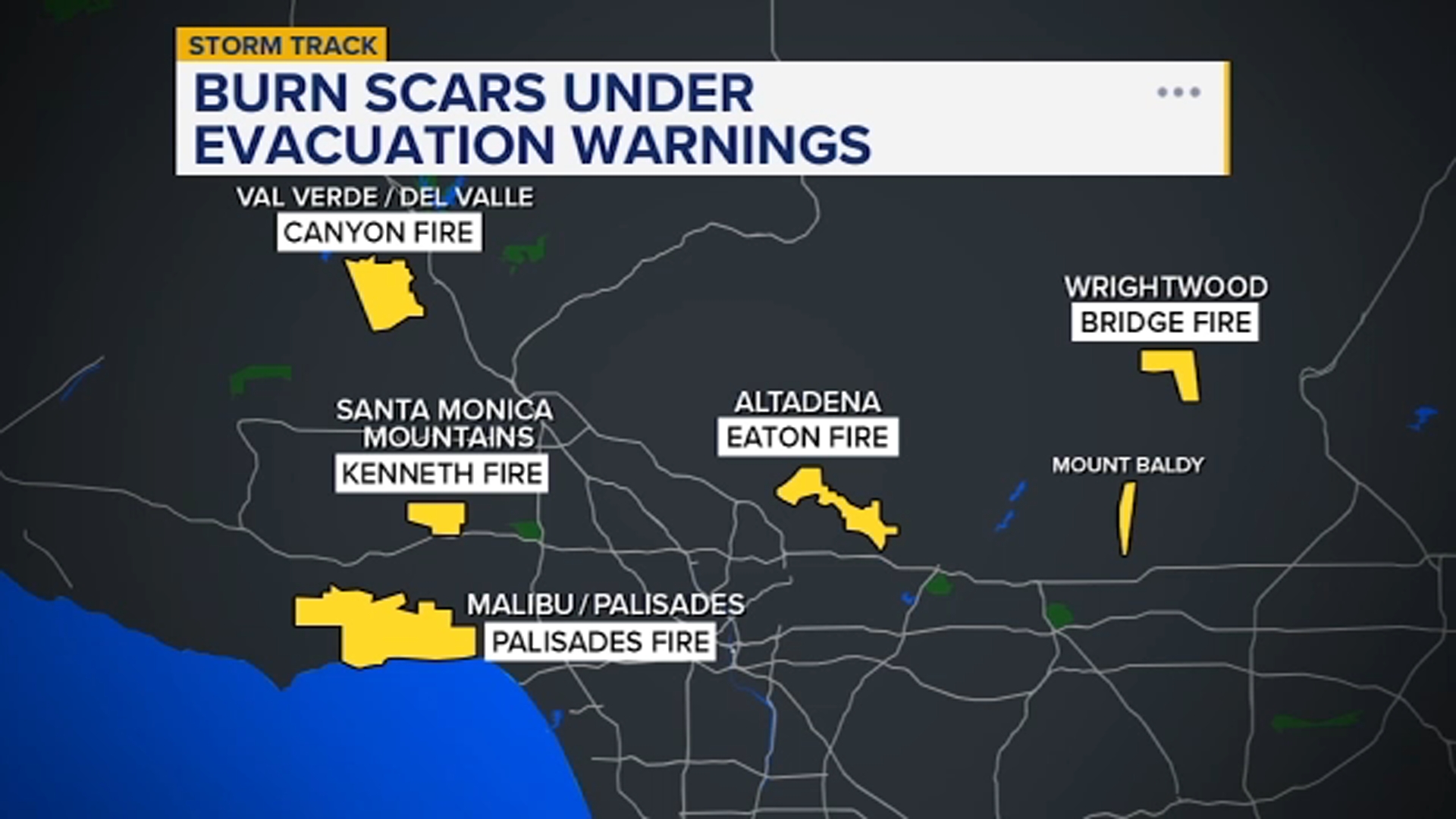 "Avoid the roads, stay indoors as much as possible, and stay aware of your environment," forecasters said. "If you have to drive, allow extra time as traffic will be increased due to slippery roads, low visibility, and localized flooding. If you are near a burn scar, heed the advice of local officials as they know your area best. Reschedule and avoid outdoor activities. If you are outside and hear thunder, see lightning, experience sudden wind shifts, or a sudden increase in rain intensity, head indoors immediately and stay away from windows. Stay out of, and far away from, any streams, rivers, and canyons -- especially campers. Avoid parking near tall trees. Be ready for sudden power outages. Boaters, please stay in a safe harbor. For everyone, stay tuned to your local news outlet and weather.gov for any updates."