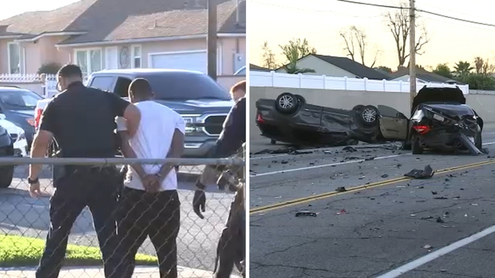A violent multi-vehicle crash near an intersection in Covina early Wednesday morning stemmed from a domestic violence incident, police confirmed.