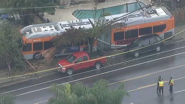 Metro bus crashes, brings down utility pole in Lake View Terrace