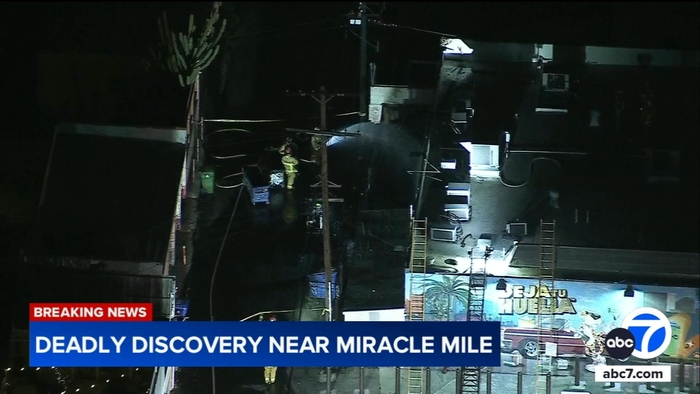 A person died following a fire in an alley behind a 7-Eleven near the Miracle Mile neighborhood of Los Angeles.