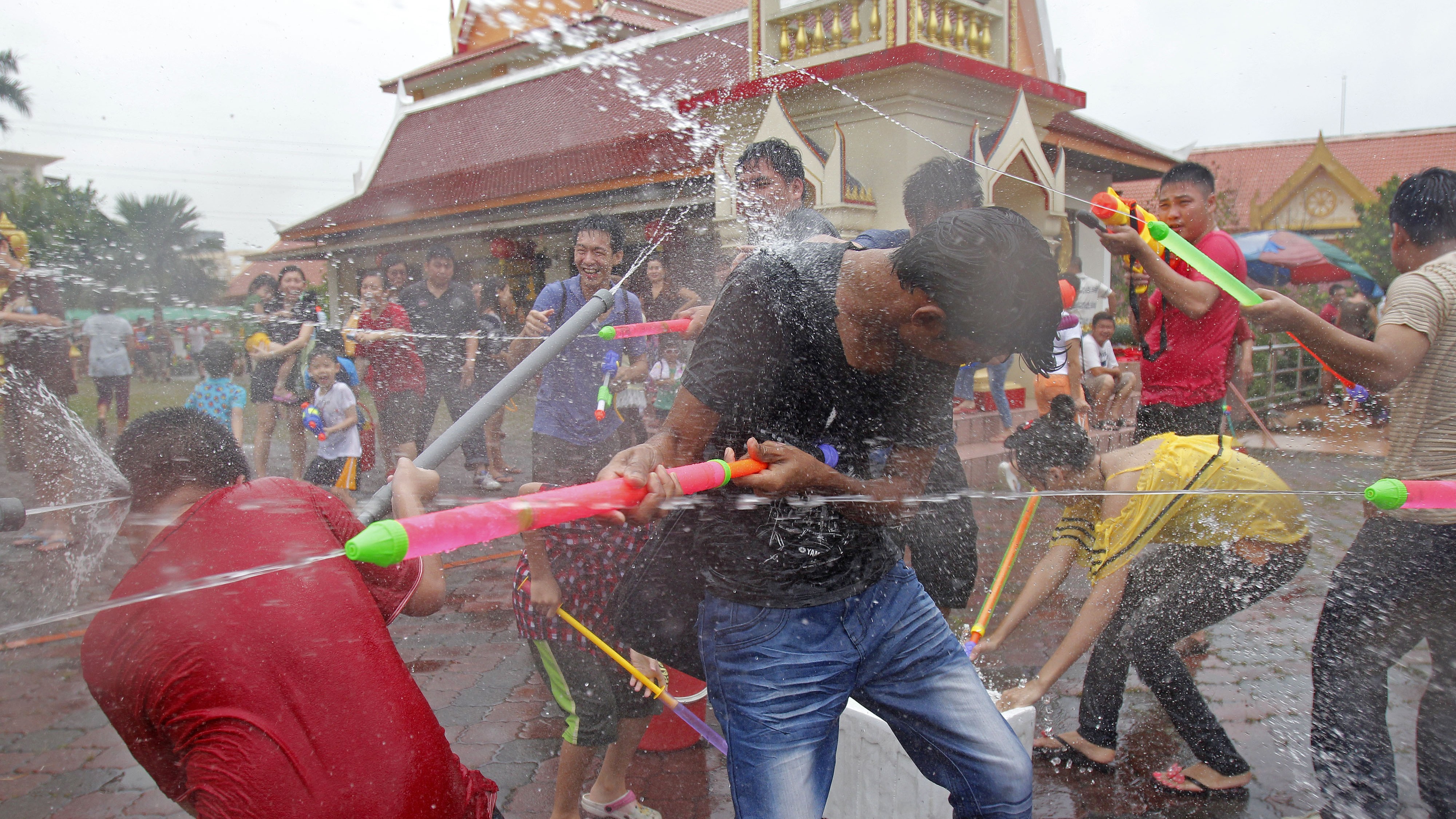 Instead of splash fights, many begin by gently pouring scented water over Buddha statues and into the hands of monks and elders.