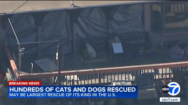 LAKE HUGHES, Calif. (KABC) -- Hundreds of cats and dogs were seized Friday from a Lake Hughes property in what officials described as a large-scale rescue operation.
