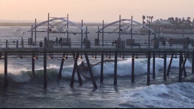 Los Angeles County Fire Department personnel responded about 7:10 p.m. to reports of a sailboat crashing into the pier.