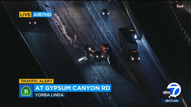 YORBA LINDA, Calif. (KABC) -- Several lanes of the westbound 91 Freeway were shut down for hours Monday morning after a person was struck and killed in Yorba Linda.