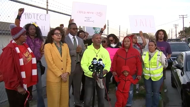Protesters gathered outside the Destiny Development Center on W. 104th Street on Friday, calling for criminal charges.