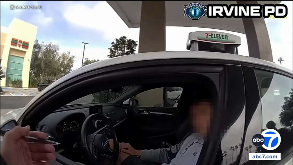 "Oh, look who's hiding in the sofa," one of the officers is heard exclaiming in the footage.