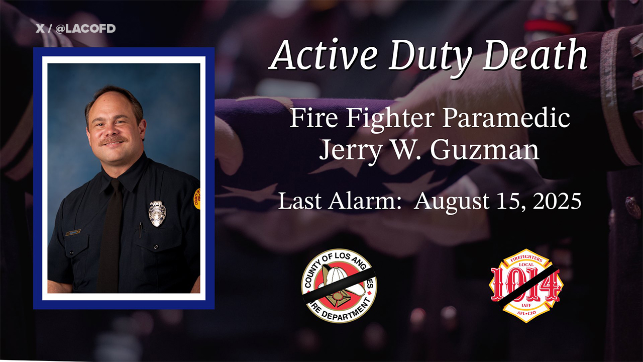 "Con gran pesar, el #LACoFD comunica la muerte en servicio activo del FFPM Jerry W. Guzmán", escribió el departamento.