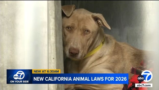 SACRAMENTO, Calif. (KABC) -- Several new California laws that will take effect on Jan. 1, 2026, are aimed at protecting pets, including banning cat declawing and cracking down on puppy mills.