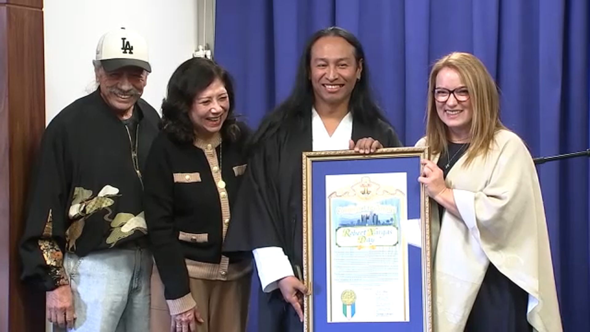 "Quiero agradecer a mi familia, a mis seguidores de cercanos y de lejanos, especialmente a la supervisora Lindsey Horvath, a la supervisora Hilda Solis y a todos los que han formado parte de mi trayectoria", dijo Vargas en un video publicado en redes sociales antes de la ceremonia. "Este es un momento verdaderamente histórico, no solo para mí y mi trabajo, sino también para la comunidad artística aquí en Los Ángeles".