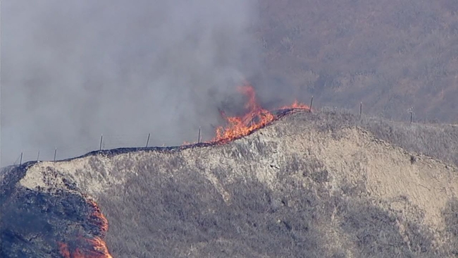 The Bert Fire was reported shortly after 2 p.m. in the area of The Old Road and Biscailuz Drive and scorched at least 47 acres before forward progress was stopped at 4:05 p.m., according to the Los Angeles County Fire Department.