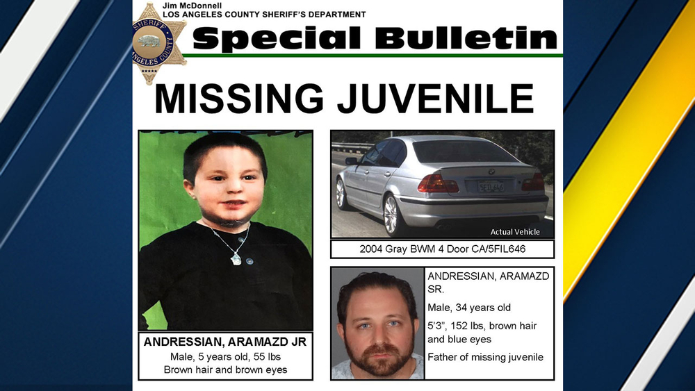 Aramazd Andressian Jr. was reported missing last Saturday by the boy's mother, who told police that his father, Aramazd Andressian Sr., had not exchanged their child as they had scheduled to do.