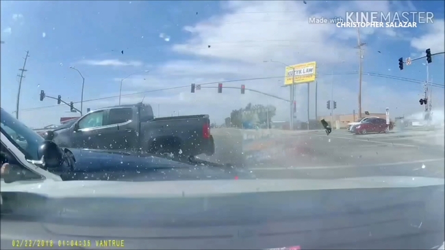 LANCASTER, Calif. (KABC) -- Startling dashcam video captured a crash involving a Lancaster deputy's patrol vehicle that was struck, leading to a chain-reaction wreck Saturday.