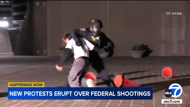 SANTA ANA, Calif. (KABC) -- A protest in Santa Ana turned violent as officers with the Department of Homeland Security attempted to clear out demonstrators near the downtown federal building Friday night.