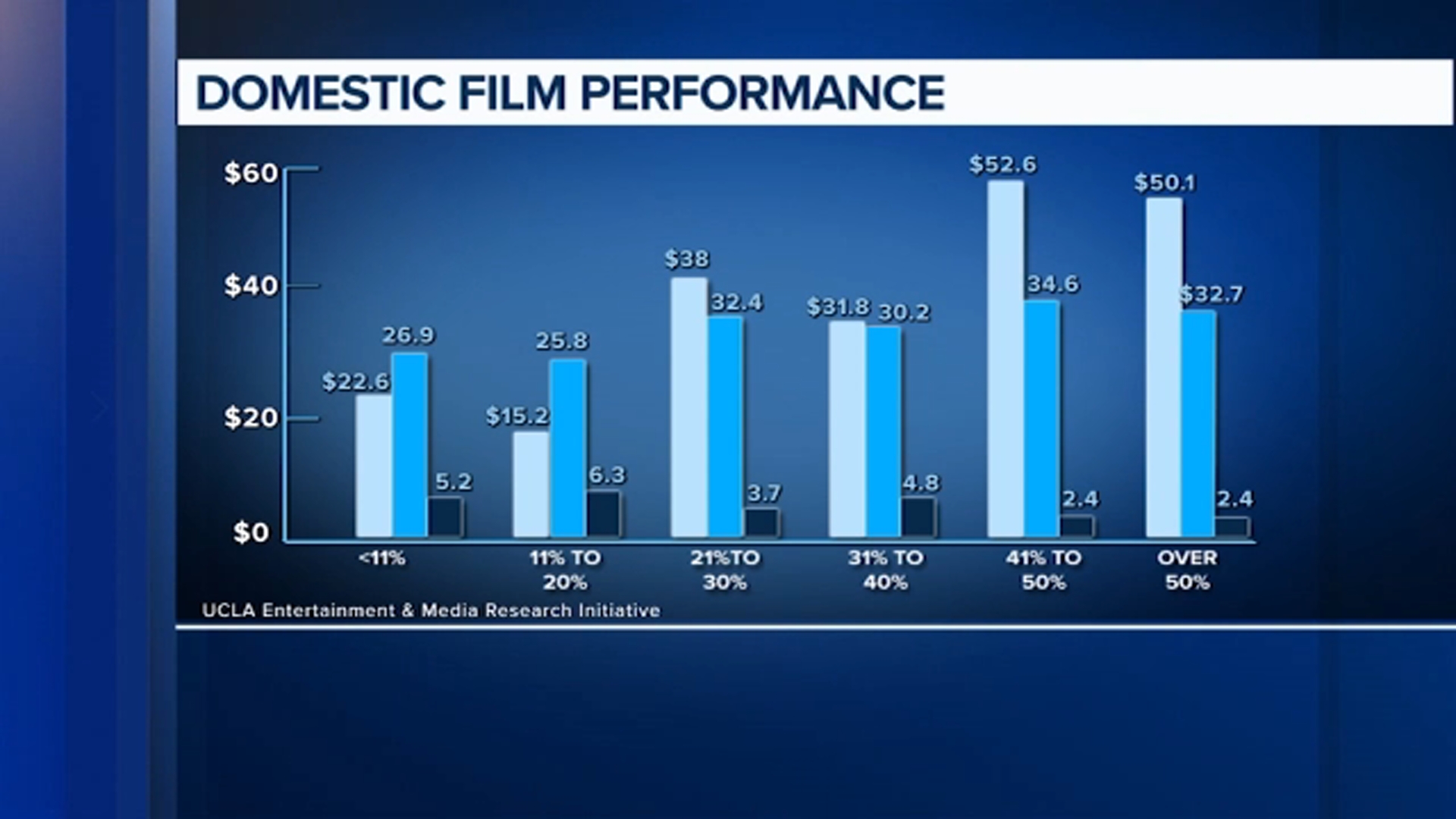 According to the study, top domestic films with casts that were 41% to 50% people of color performed better at the box office.