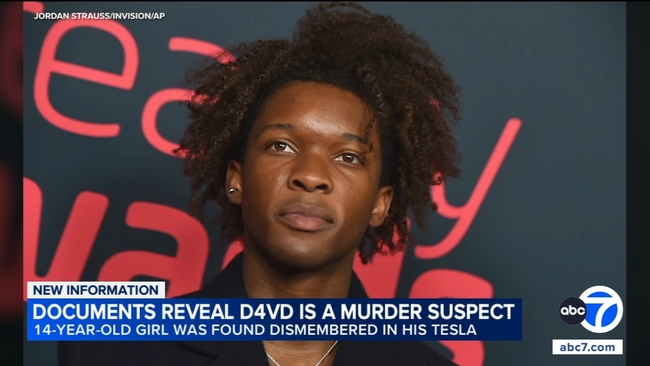 LOS ANGELES (KABC) -- Documentos judiciales de Texas confirman que el cantante conocido como D4vd es sospechoso del brutal asesinato de una adolescente de 14 años.