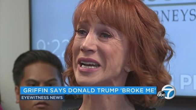 At a rambling press conference Friday, Griffin tearfully predicted her career is over and said Trump "broke me." Since the video was posted Tuesday, she has lost her job co-hosting CNN's New Year's Eve special and had at least four comedy shows canceled. Trump, first lady Melania Trump and Donald Trump Jr. have publicly criticized the video.