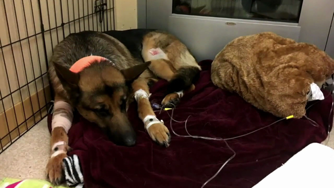 Rex was able to bite one of the men, but they beat him to get away. As they headed upstairs, Rex continued trying to attack the burglars despite being bloodied and bruised. That's when he was shot three times - including once in the neck. Sirens from nearby police cars prompted the burglars to flee the home.