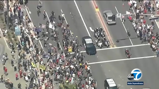 Large crowds gather in Huntington Beach to protest Newsom stay-at-home orders