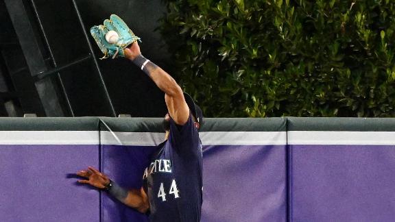 Julio Rodriguez jumped high above the wall to rob Taylor of a potential two-run homer to end the sixth. The Seattle center fielder teased Angels fans who thought the ball was gone by taking several steps on the warning track before flipping the ball from his glove to his throwing hand.