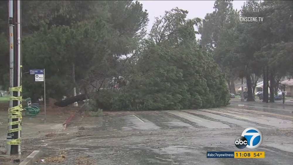LOS ANGELES (KABC) -- A powerful storm moving through Southern California has knocked out power to about 61,000 customers in Los Angeles on Friday.