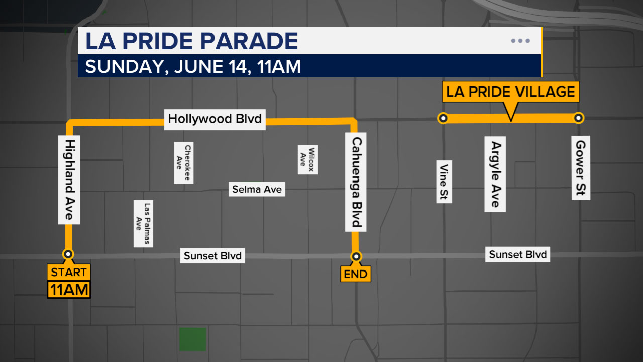 The LA Pride Parade route will begin at Sunset Blvd. and Highland Ave., traveling north to Hollywood Blvd., east to Cahuenga Blvd., and south back to Sunset Blvd. Applications for the parade can be found here.
