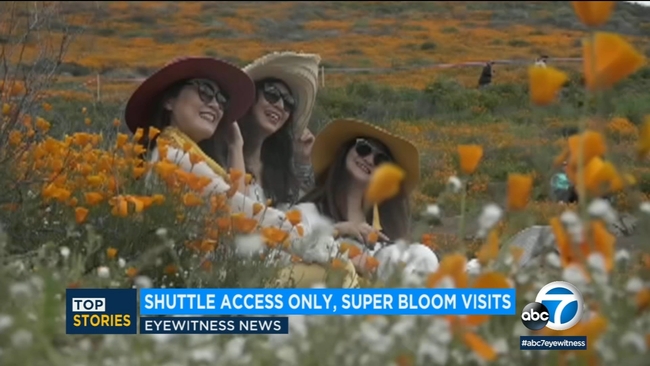 LAKE ELSINORE, Calif. (KABC) -- Saturday saw another day of massive crowds in Lake Elsinore, where thousands of people continue to flock to see the super bloom of poppies.