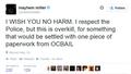 "I WISH YOU NO HARM. I respect the Police, but this is overkill, for something that would be settled with one piece of paperwork," he said in another tweet.
