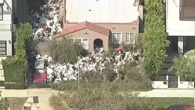 HUNTINGTON BEACH, Calif. (KABC) -- Neighbors say the mounds of clutter outside a Huntington Beach home are so bad, they can't use the sidewalk in front of the house.