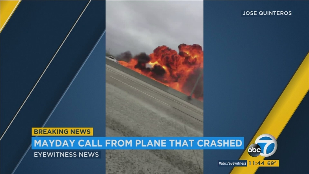 ABC7 viewer Jose Quinteros captured the crash on video. He told ABC7 that he was driving on the northbound side of the freeway heading home to Santa Ana when he noticed a plane that appeared out of control, and that's when he started recording.