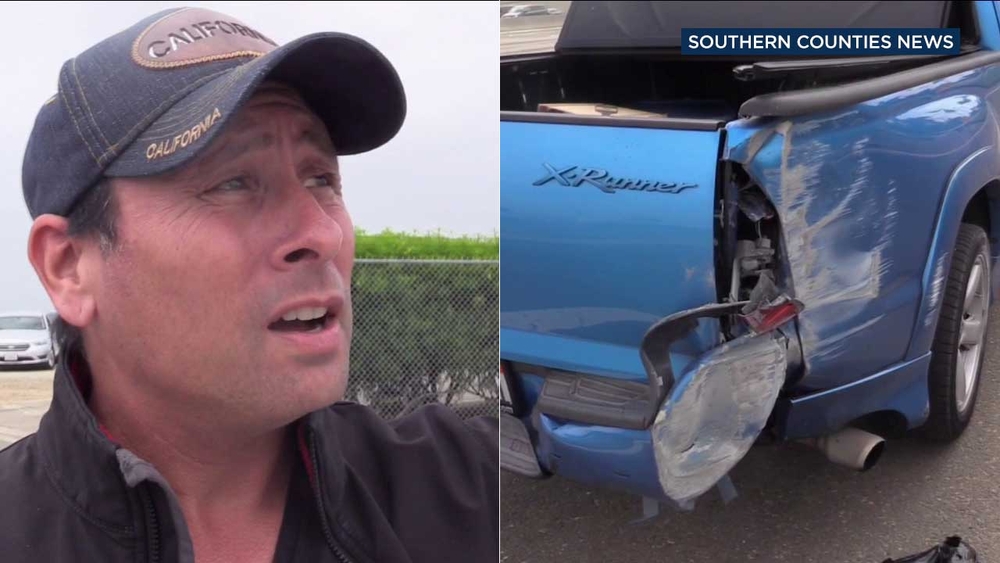 Blackstone Hamilton, the Uber driver in that clipped car, told ABC7 that the plane hit the rear end of his pickup truck, which then went out of control.