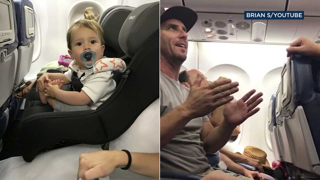 Schear says he originally bought the seat for his 18-year-old son Mason, but then decided to send him home on an earlier flight so that he could use the seat for his younger child, Grayson, who was placed in a car seat.