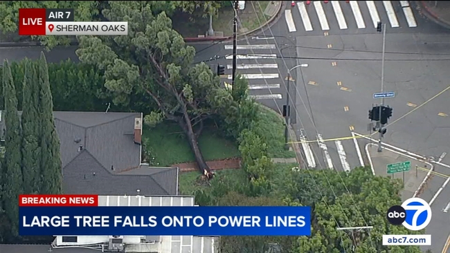 In Sherman Oaks, a large tree came crashing down on power poles at Valley Vista and Beverly Glen boulevards. More than 400 people were left without power, according to the Los Angeles Department of Water and Power, but service was restored a few hours later.