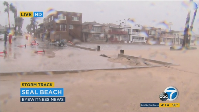 In Seal Beach, water was pooling up in front of beachfront homes, as city crews set up pumps to try to divert the flow.