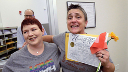 Kennedy's reading of the ruling elicited tears in the courtroom, euphoria outside and the immediate issuance of marriage licenses to same-sex couples in at least eight states. In Dallas, Kenneth Denson said he and Gabriel Mendez had been legally married in 2013 in California but "we're Texans; we want to get married in Texas."
