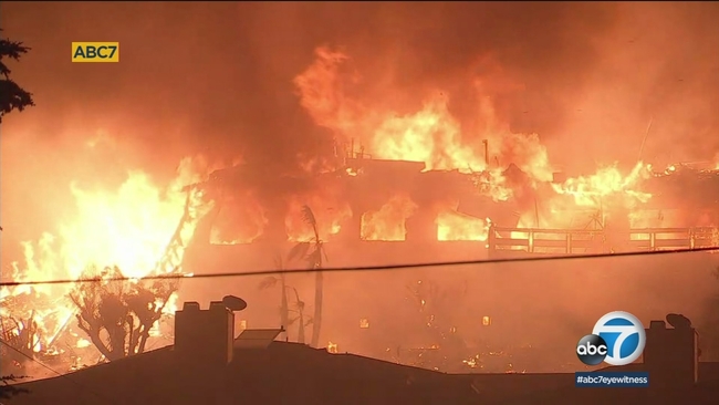 VENTURA, Calif. (KABC) -- The massive Thomas Fire continued to engulf everything in its path Tuesday, even destroying an entire apartment complex in downtown Ventura.
