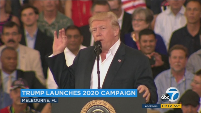 DOWNTOWN LOS ANGELES (KABC) -- Thousands of activists gathered at Pershing Square in protest of the recent raids by the U.S. Immigration and Customs Enforcement agency.