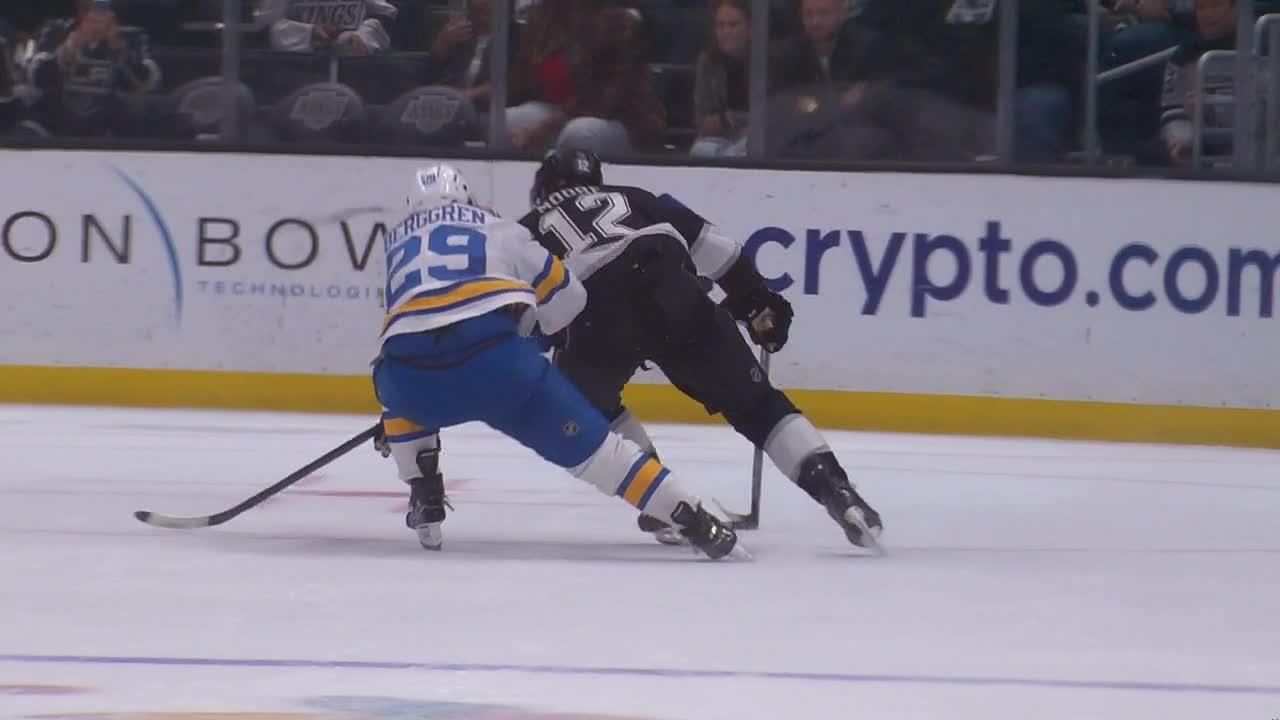Moore sped up the right side, outskated Jonatan Berggren, centered the puck and snapped a shot past Binnington for the victory. Anze Kopitar and Drew Doughty assisted on the goal.