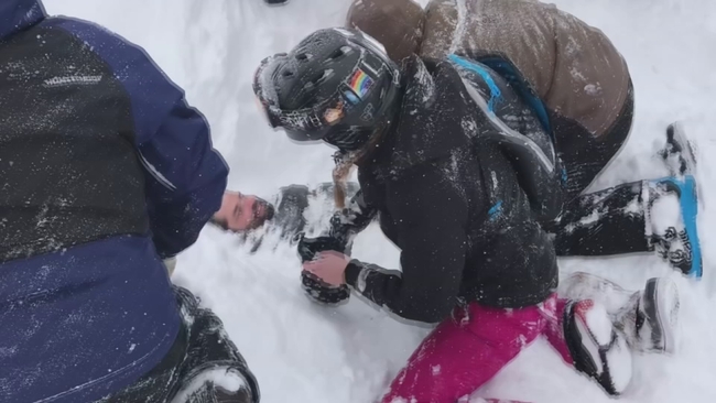 "I took my gloves off and I helped dig him out," she said. "When he got uncovered, a ski patroller said, 'You were under for six minutes.'"