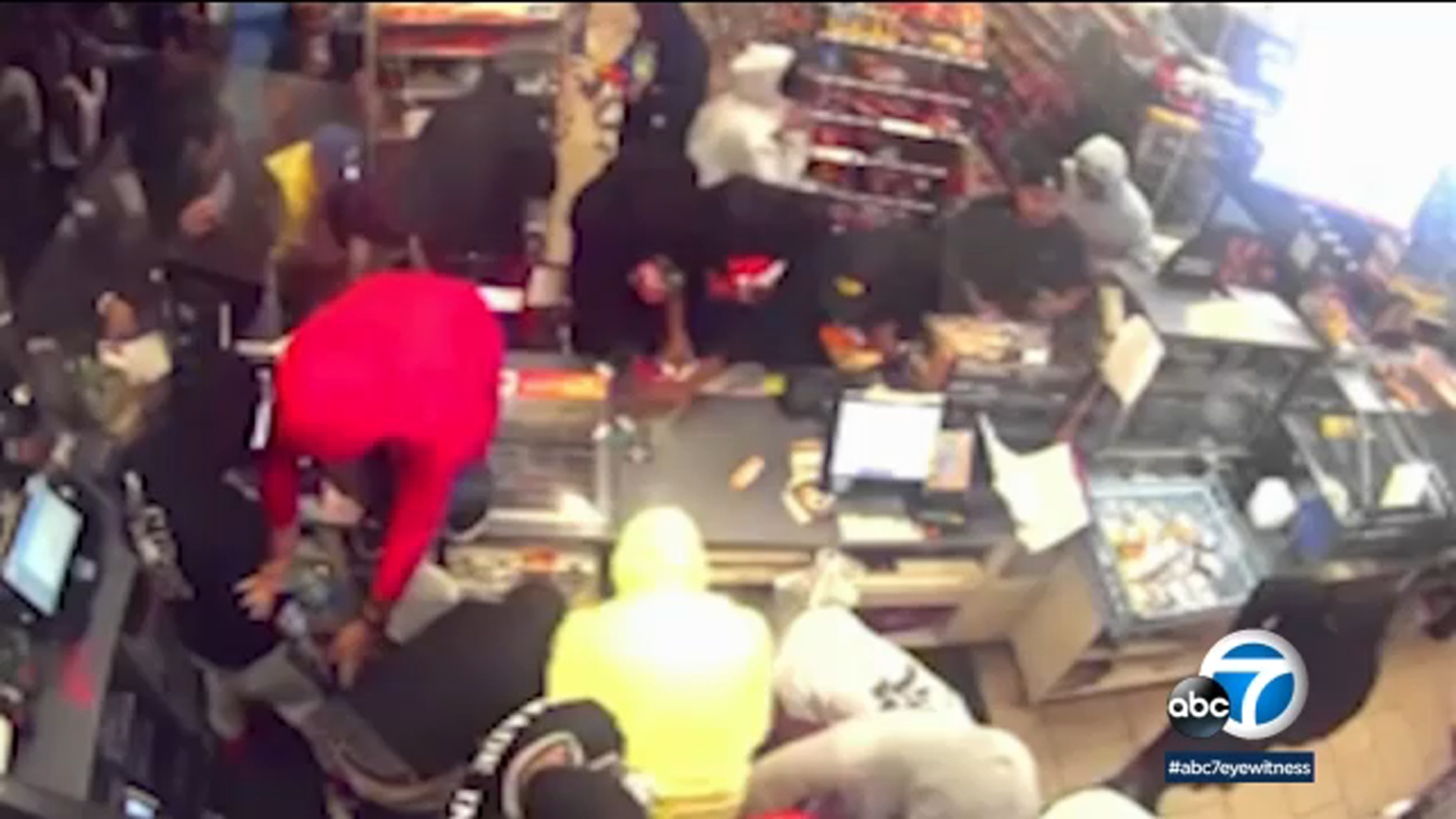 SAN BERNARDINO, Calif. (KABC) -- With the San Bernardino shooting suspects on the run and police hot on their tail, gunfire erupted in the middle of the pursuit on Wednesday. It was all caught on camera from a resident.