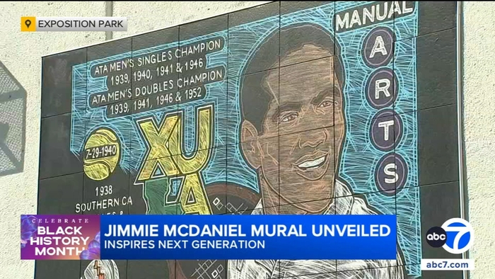 Decades in the making, a new mural honors tennis trailblazer Jimmie McDaniel, the first Black tennis player at his high school in Los Angeles who claimed several national championships in the 1930s.