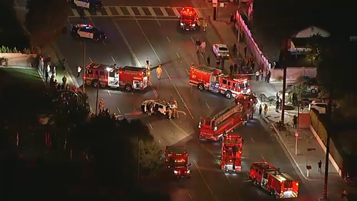 Two of the vehicles involved ended up in the front yards of homes on either side of the boulevard while a badly damaged SUV stood right in the middle of the road.