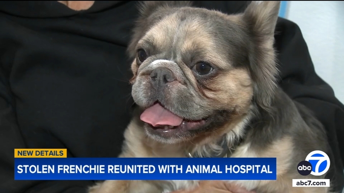 A French bulldog that was stolen from a Gardena veterinary practice has been reunited with its owner following a disturbing string of events involving scammers looking to profit from the dogs' return.