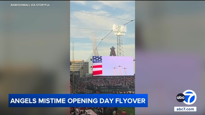 Angels' national anthem flyover runs late at home opener