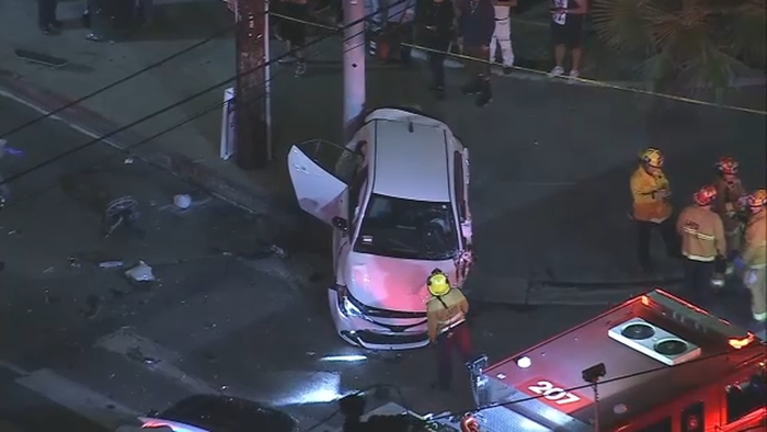 Multiple pedestrians hurt after car crashes onto DTLA sidewalk